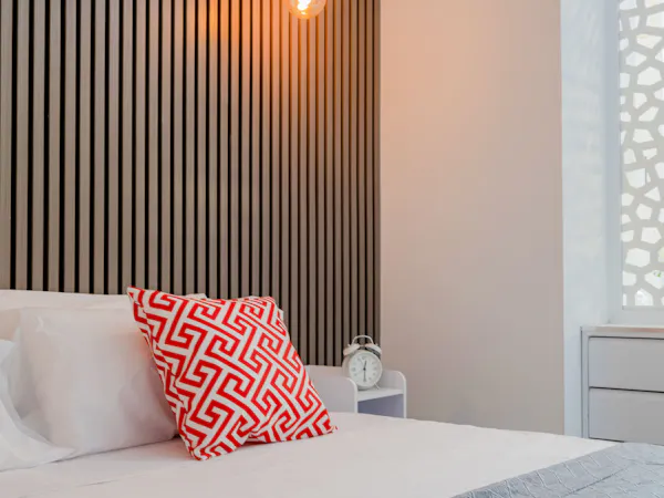 The Bedroom: A high-end double bed for optimal rest.