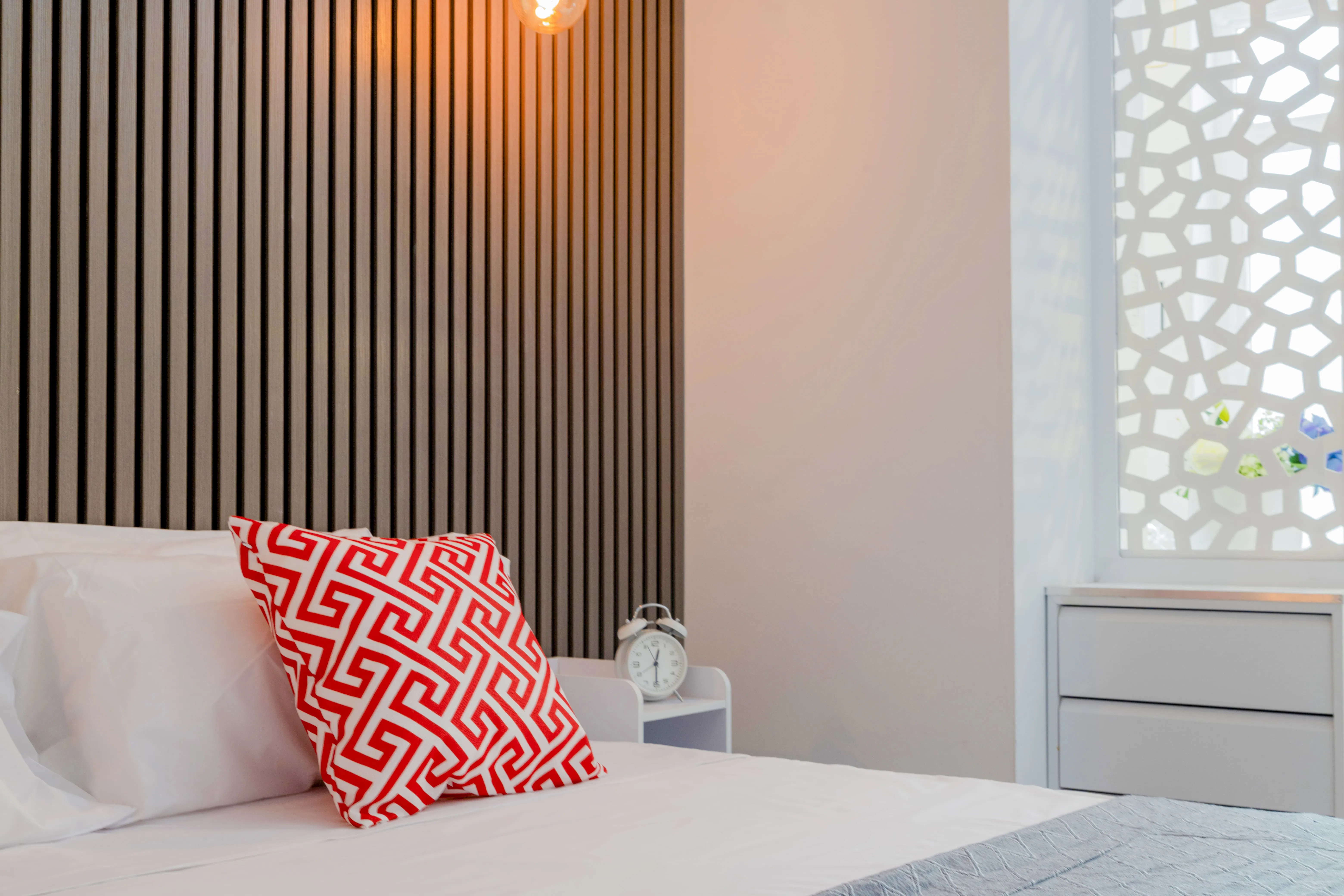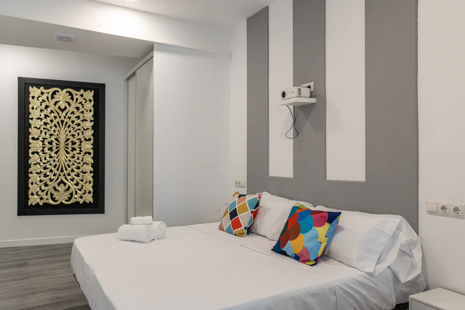 The Bedroom: A high-end double bed for optimal rest.